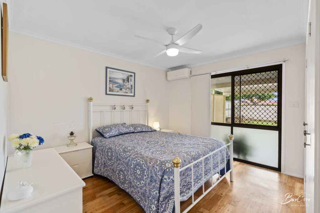 Outdoors, the appeal continues with spacious front and rear yards, providing plenty of room for children and pets to play, weekend BBQs or simply enjoying the fresh bayside air. A secure, gated front yard adds peace of mind and additional vehicle storage, complemented by a two-car carport and rear garden shed.